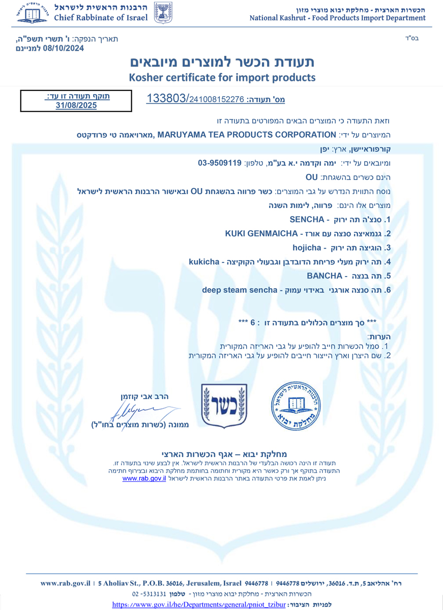 לתעודת כשרות OU עד 31.8.2025