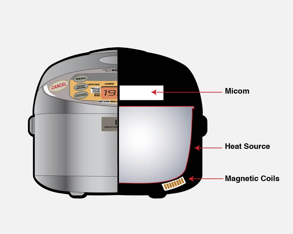 - Micom חימום אנרגטי יעיל חימום אינדוקציה משתמש במחבת הבישול כמוליך, ויוצר טמפרטורות גבוהות יותר אשר מביאות לאורז אוורירי יותר. השרייה ואידוי מתוכנתים מראש.